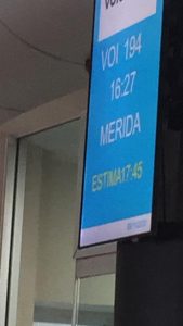 Cuando intento pagar, me dice el chico: “Algo le pasa a su tarjeta que no acepta”. Y la mujer:”¿Ya no hay más equipaje para Mérida? Y Yo… dale, ten la de débito.